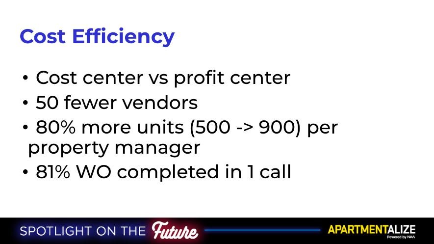 With cleaner processes and smarter tools in place, maintenance operations also became more efficient—81% of work orders are now completed in a single call. It’s a clear example of how centralization, when done right, isn’t just a staffing solution—it’s a performance engine.